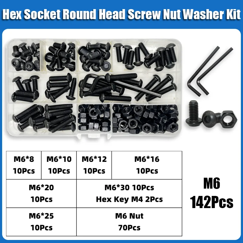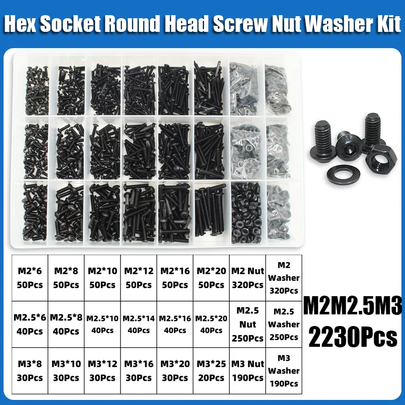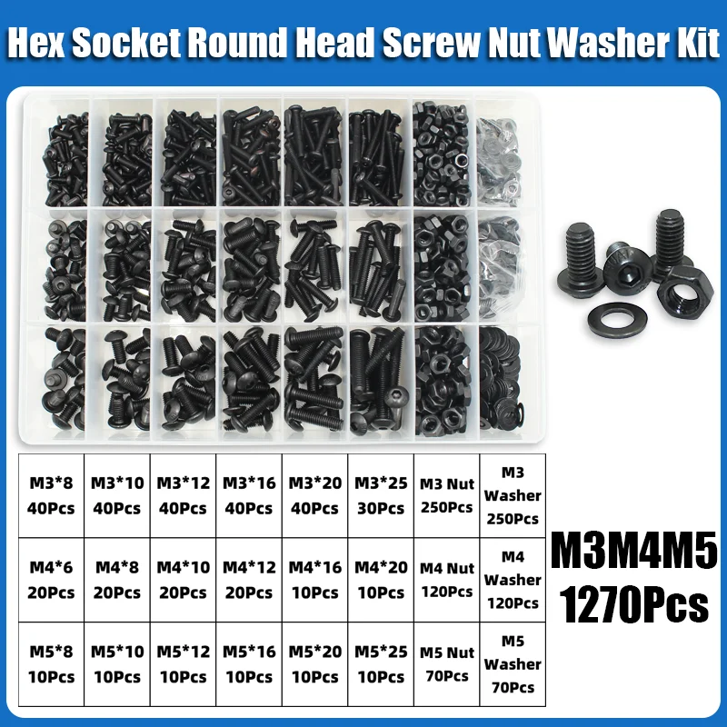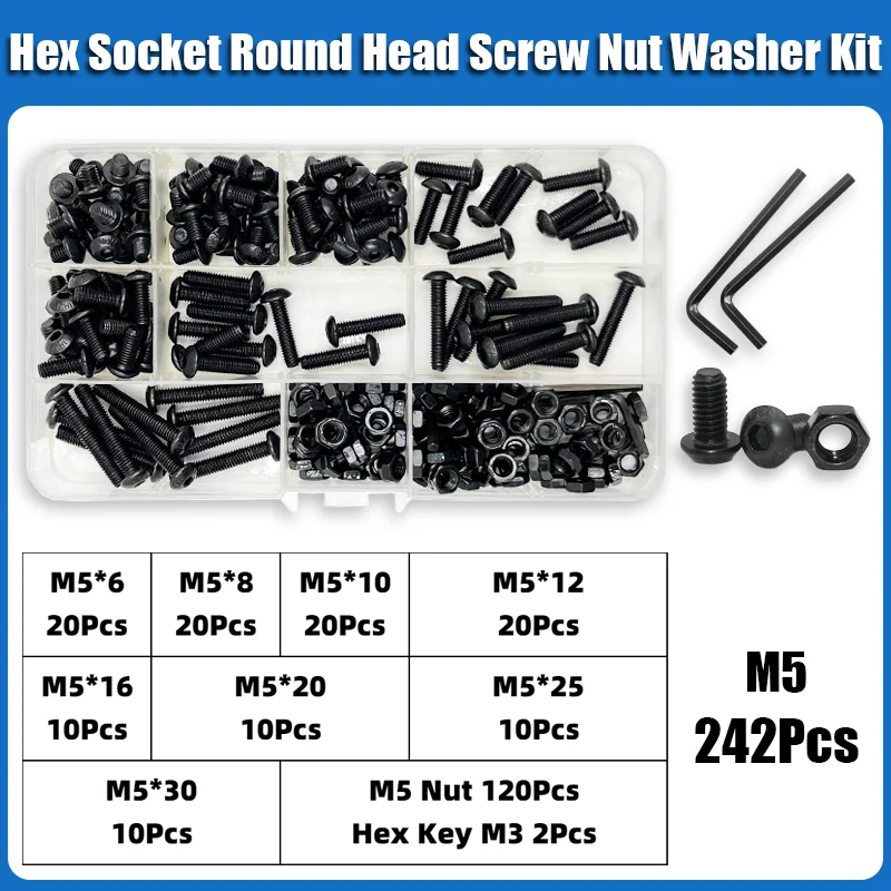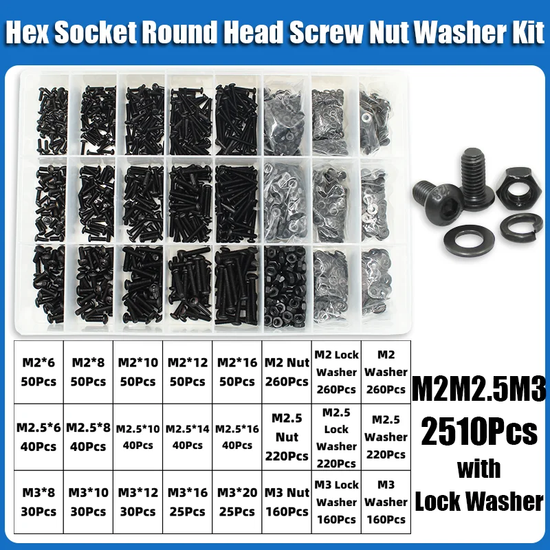 2510p Hex Hexagon Socket Button Head Screw Kit M2 M2.5 M3 M4 M5 M6 Black 10.9 G