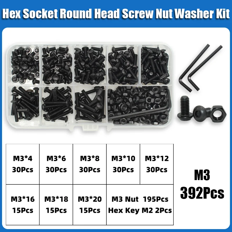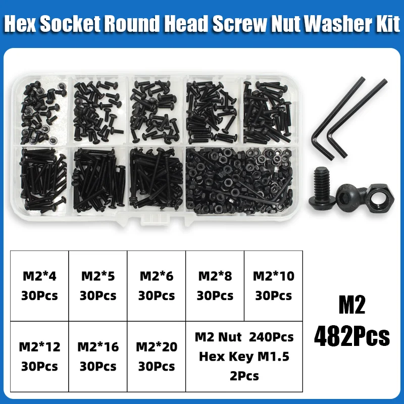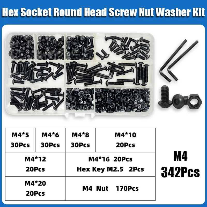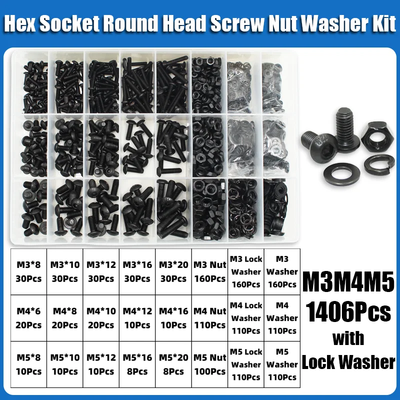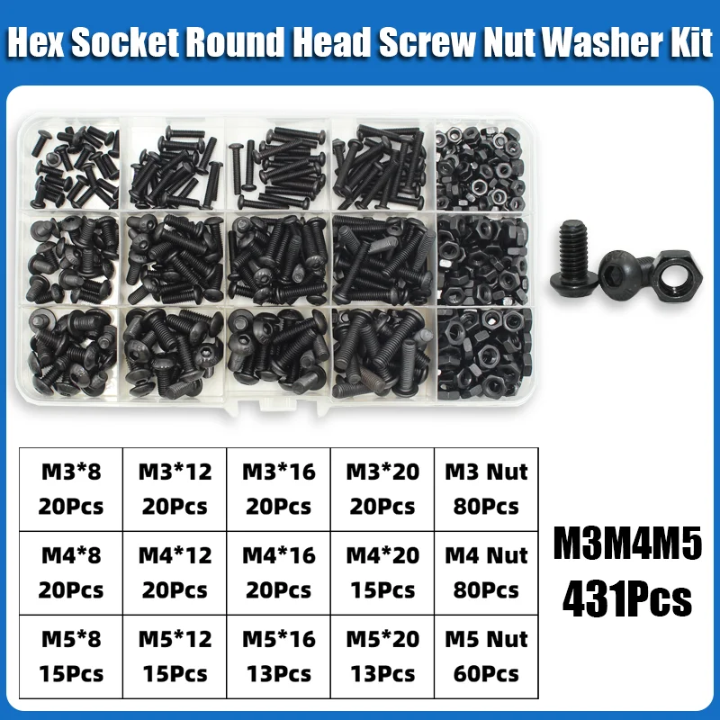 2510p Hex Hexagon Socket Button Head Screw Kit M2 M2.5 M3 M4 M5 M6 Black 10.9 G